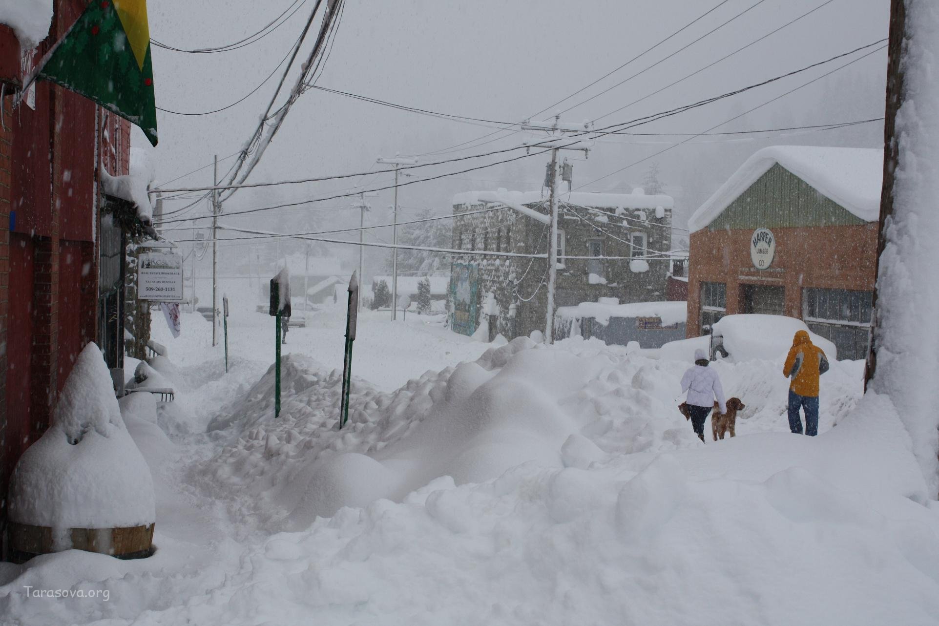 Всю ночь шел снег и наутро прилично снега намело. Никто из жителей на работу не пошел, т.к. машины не смогли бы выехать, да и на проезжей части дороги все были в снегу. Жизнь замерла примерно на 3 дня. На четвертый день люди стали выходить из своих домов за продуктами, в основном шли пешком.